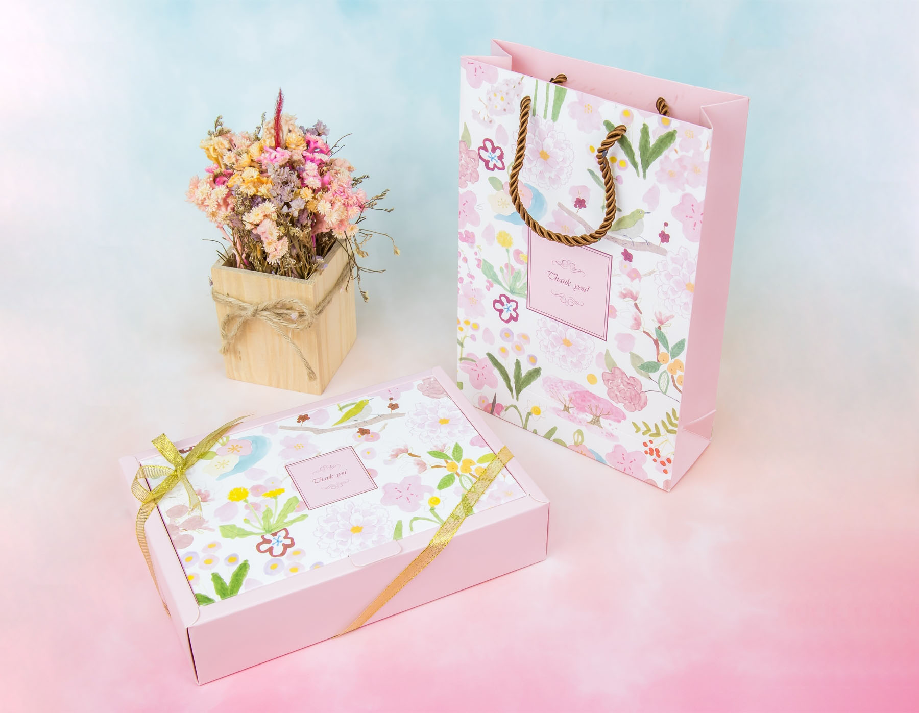 เซ็ทกล่องพร้อมถุงกระดาษ ลายดอกไม้