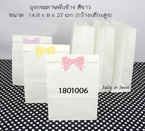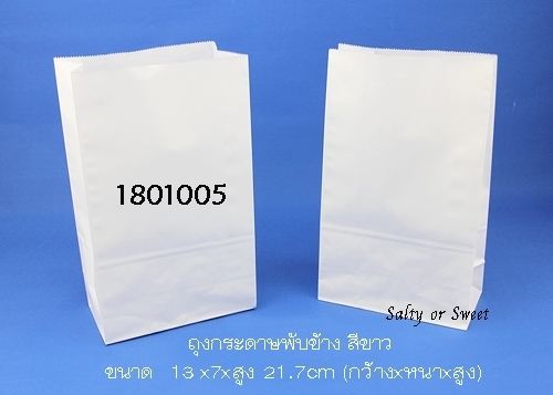 ถุงกระดาษพับข้างสีขาว มีก้น