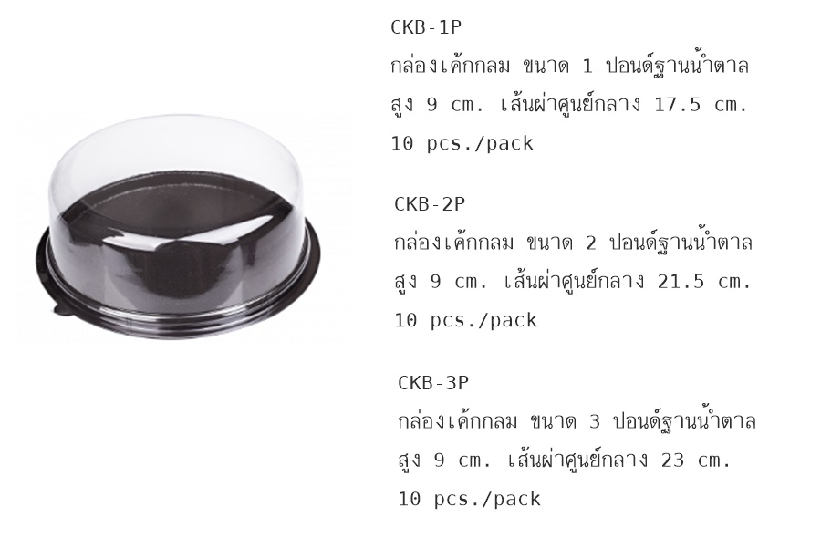 กล่องเค้กกลม ขนาด 1-3 ปอนด์ฐานน้ำตาล