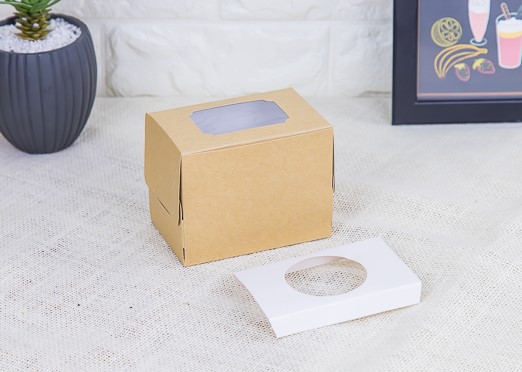 กล่องคัพเค้ก 1 ชิ้น คราฟหลังขาว (พร้อมฐาน)