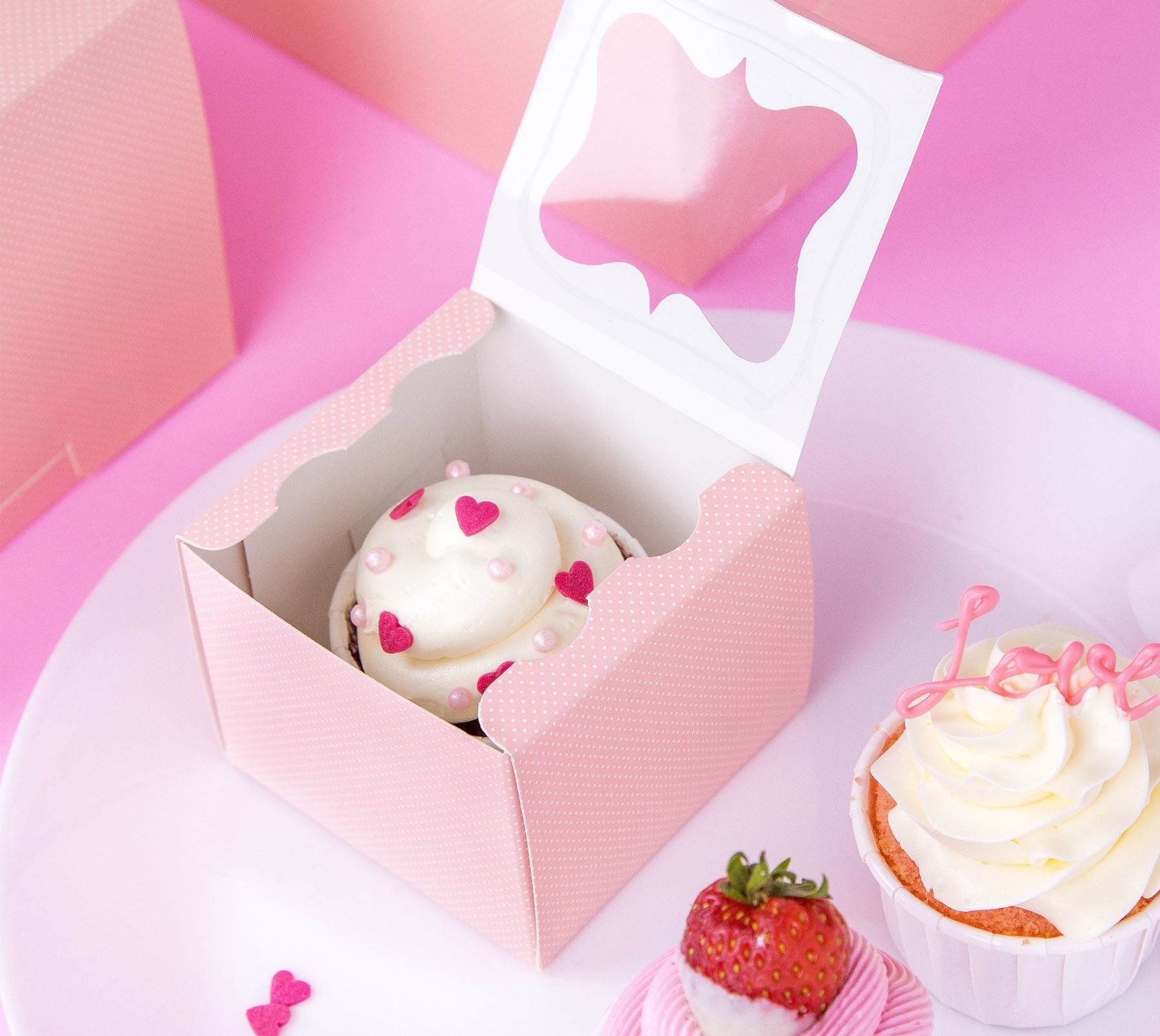 กล่องคัพเค้กเล็ก สีชมพูจุด