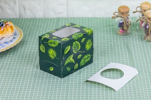 กล่องคัพเค้ก 1 ชิ้น กรีน ทรอปิคัล (พร้อมฐาน)