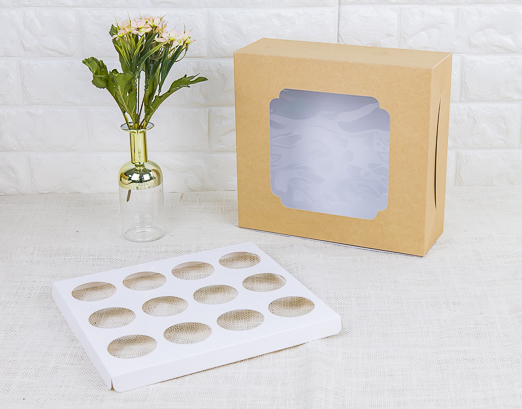 กล่องคัพเค้ก 12 ชิ้น คราฟหลังขาว (พร้อมฐาน)