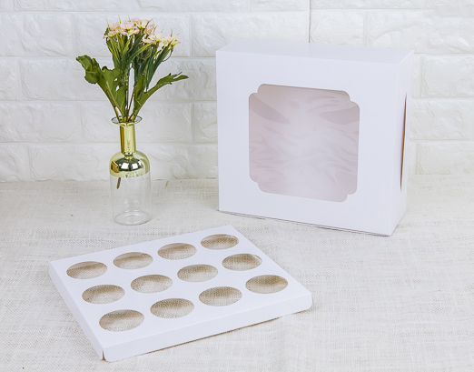กล่องคัพเค้ก 12 ชิ้น สีขาว