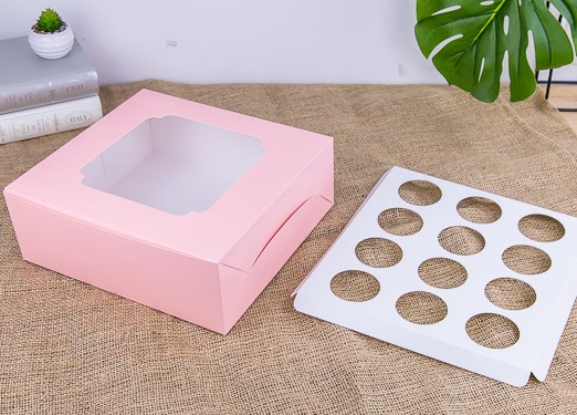 กล่องคัพเค้ก 12 ชิ้น คราฟ (พร้อมฐาน)