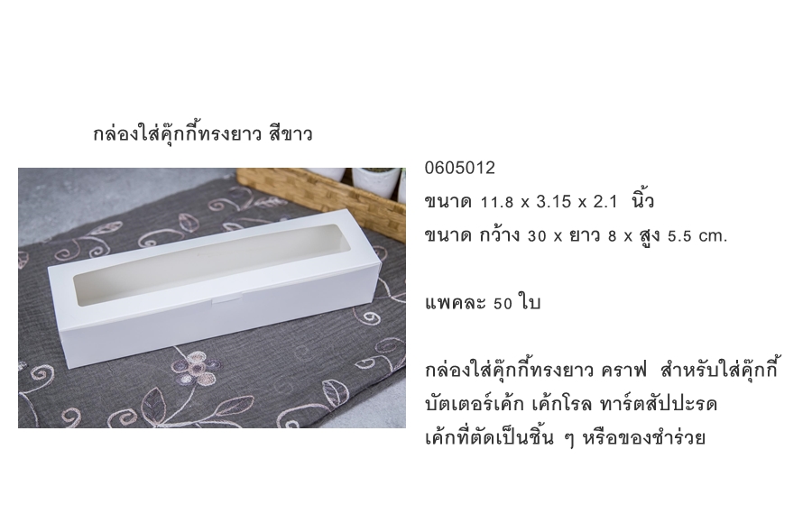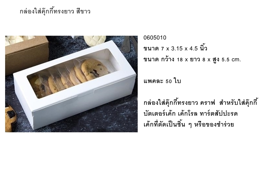 กล่องใส่คุ๊กกี้ทรงยาว สีขาว