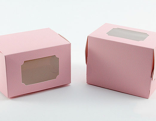 กล่องคัพเค้ก 1 ชิ้น สีชมพูทรงสูง ลายจุด+ พร้อมฐานหลุม