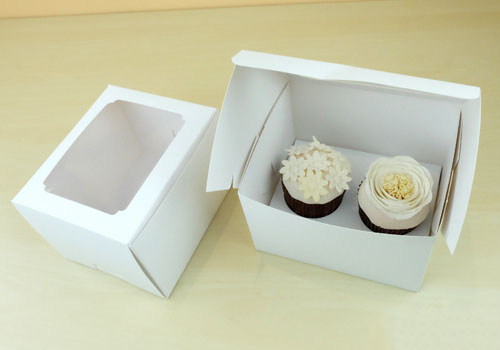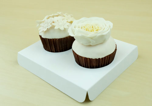 กล่องคัพเค้ก 2 ชิ้นทรงสูง ขาว พร้อมฐาน