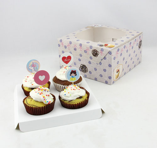 สินค้าหมวด : Paper Boxes  > กล่องคัพเค้ก 4 ชิ้น เทาลายผ้า