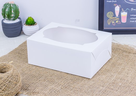 กล่องใส่คัพเค้กได้ 6 ชิ้น สีขาว พร้อมฐานหลุม