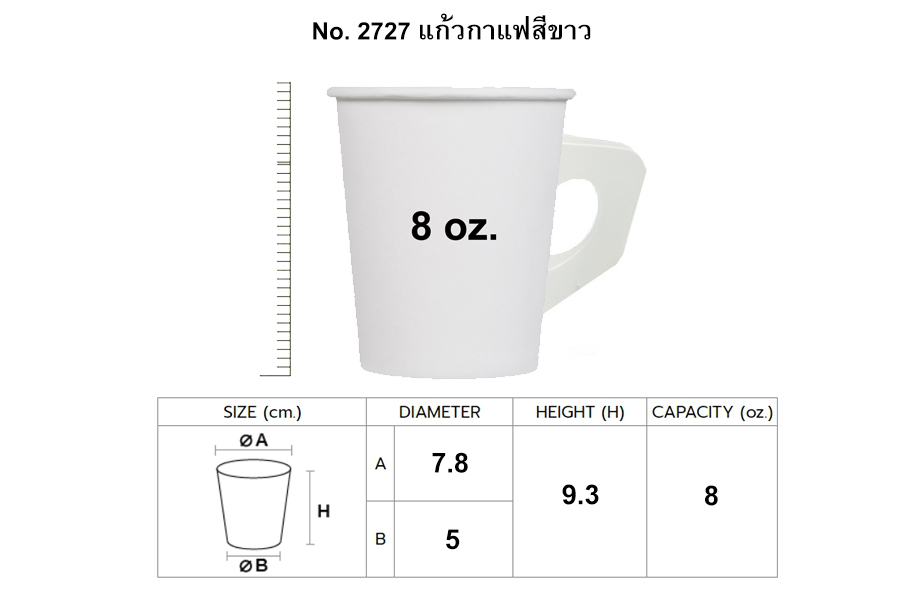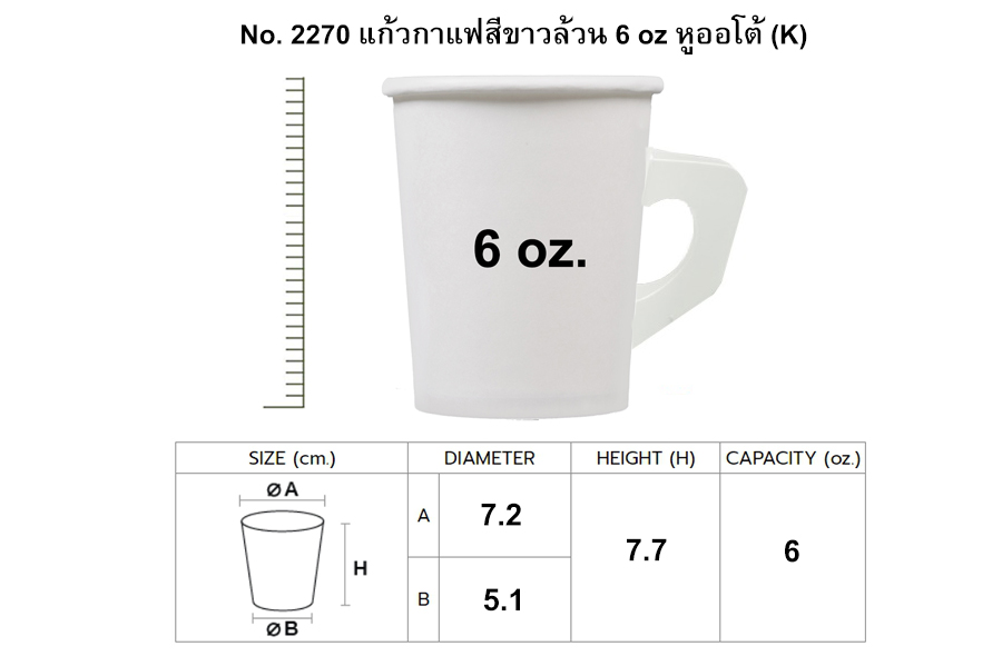 สินค้าหมวด : Cup  > แก้วกาแฟสีขาวล้วน ติดหู 6 oz.